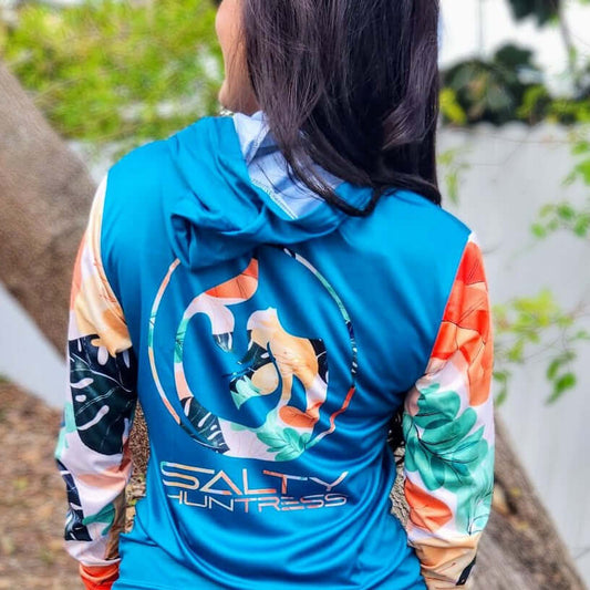 Women's Sun Shirt - Mermaid Blue with Hood/Thumb holes