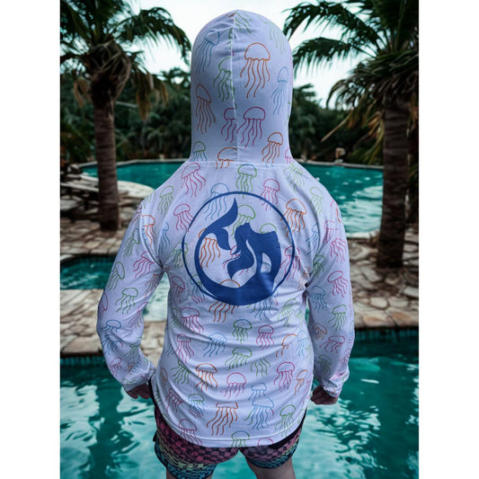 Kid's Sun Shirt - Jellyfish on White with Hood/Thumbholes