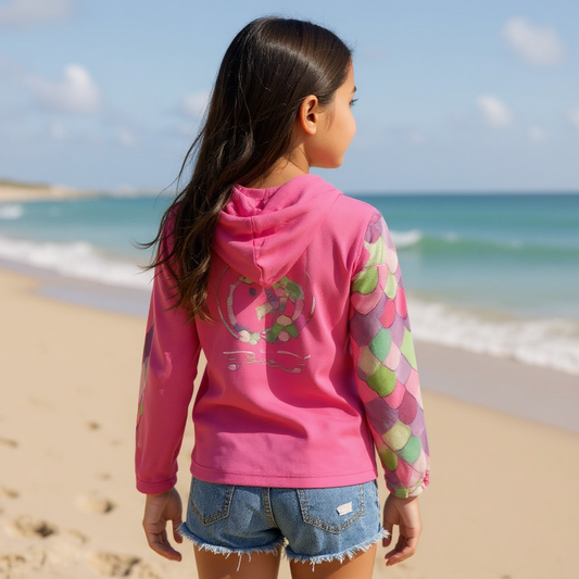 Kid's Sun Shirt - Mermaid Pink with Hood/Thumbholes