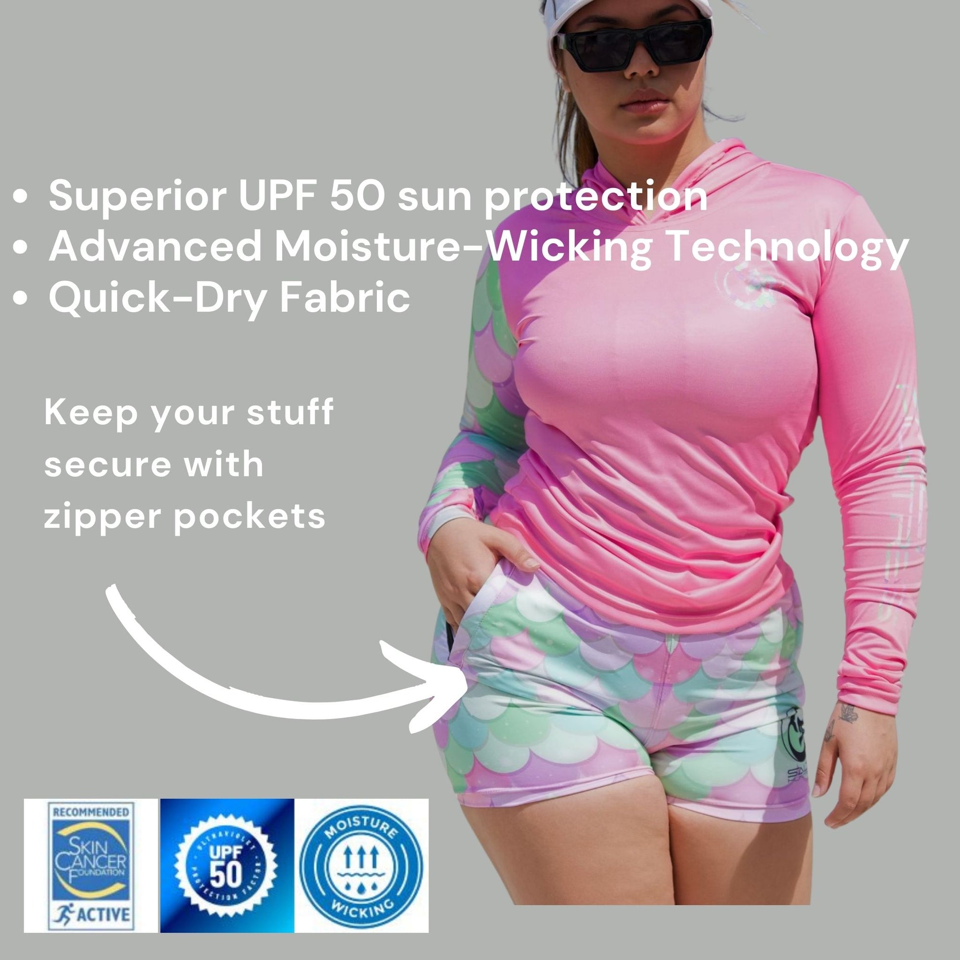 Women's Board Shorts - Mermaid Pink with Zip Pockets