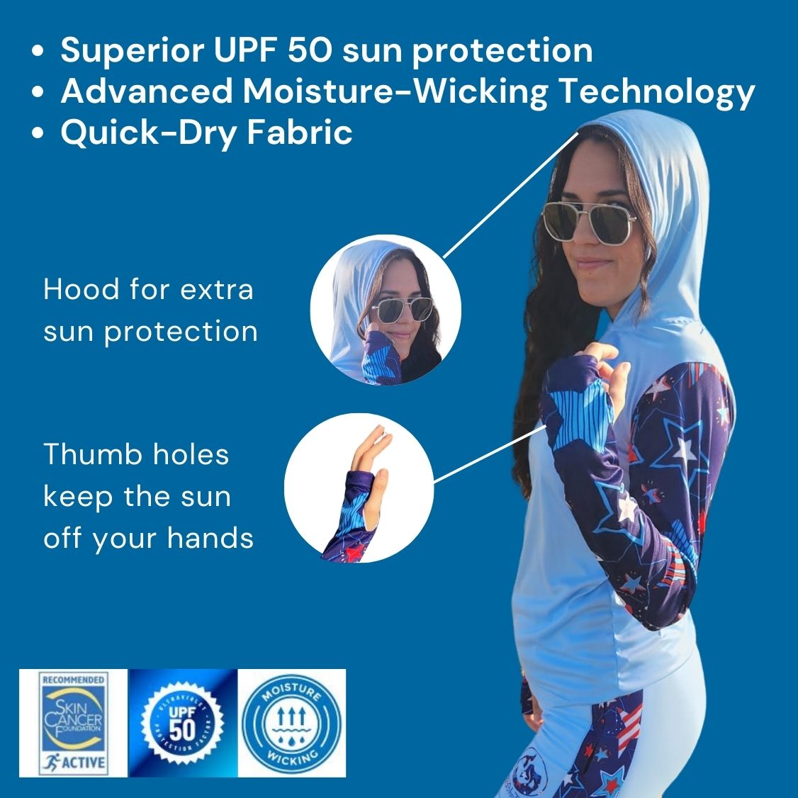 Embrace the wild with our AdventureGuard Hooded Sun Shirt tailored for adventurous women. Whether you're hiking, fishing, or hunting, this shirt provides superior sun protection and comfort, featuring thumb-holes for added hand protection and a built-in hood for extra sun coverage.